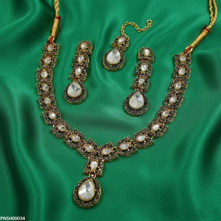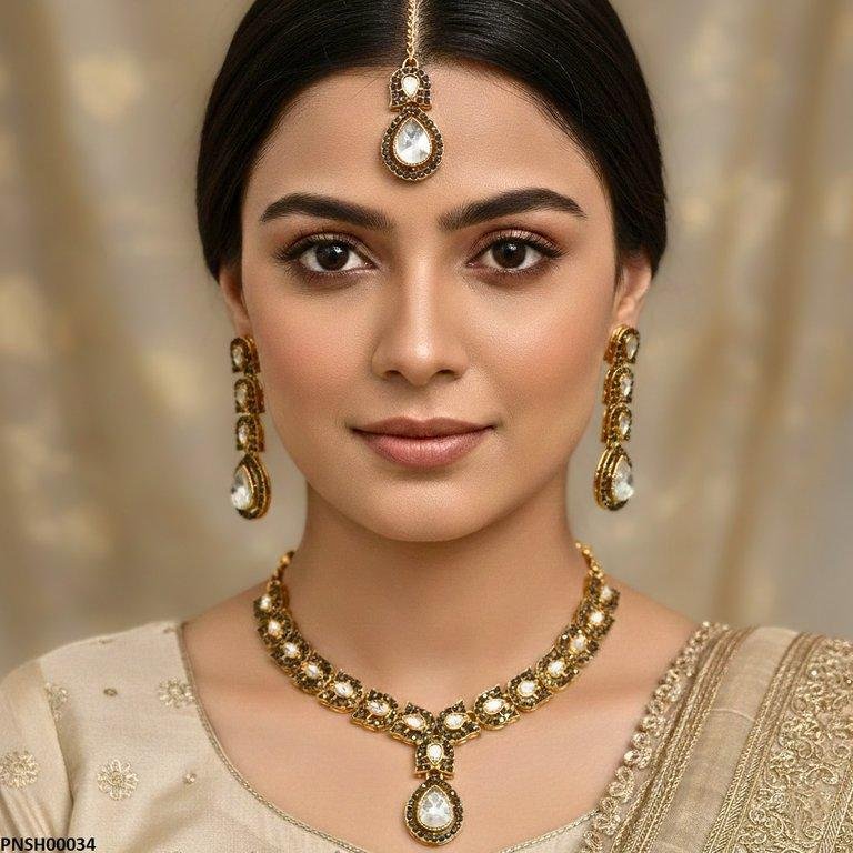 Package Included: 1x PCS of Necklace, 1x Pair of Earrings,1x of Bindi
